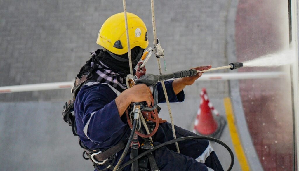 Pressure washing uses high-pressure water to remove dirt, grime, algae, mold, and stains from hard surfaces.